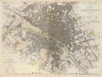 | Keywords: SDUK, Paris, 1834 - David Rumsey.jpg 1834 Engraved map Hand col Includes drawings of 13 building facades Scale 1 16 000 David Rumsey Historical Map Collection Branch M C An atlas of rare city maps p 38-41 object history exhibition history credit line The SDUK as the Society was known produced inexpensive maps to encourage broad use in education The maps in these two volumes were issued in parts over several years The city plans are of particular interest with vignettes and great detail The gnomonic star maps were issued separately in this edition in their own covers This is the second edition the first being by Baldwin and Cradock with the maps issued in numbers and later bound as a set Rumsey Collection copy originally issued without the 6 World on a gnomonic projection maps; copies of them have been laid in Atlas is bound in half leather dark brown cloth covered boards with Maps Vol 1 Maps Vol 2 stamped in gold on the spines Maps with outline color; geological map of England and Wales hand colored in full color accession number place of creation http //www davidrumsey com/luna/servlet/detail/RUMSEY~8~1~21027~540004 Western division of Paris and http //www davidrumsey com/luna/servlet/detail/RUMSEY~8~1~21028~540005 Eastern division of Paris - David Rumsey Historical Map Collection <gallery> File SDUK Western division of Paris 1834 - David Rumsey jpg File SDUK Eastern division of Paris 1834 - David Rumsey jpg File SDUK Paris 1834 - David Rumsey jpg File SDUK Western division of Paris 1865 - David Rumsey jpg File SDUK Eastern division of Paris 1865 - David Rumsey jpg File SDUK Paris 1865 - David Rumsey jpg</gallery> PD-100 Maps of Paris in the 19th century 19th-century maps of Paris David Rumsey Historical Map Collection 1834 in Paris 1834 maps Society for the Diffusion of Useful Knowledge Great Britain |