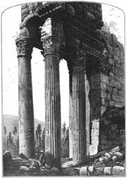 | Keywords: SE corner of Temple of Bacchus, Baalbek.png J D Woodward en Caption center smallcaps the south-east corner of the temple of the sun ba'albek <br>At the east end of this temple there was a vestibule with a row of fluted columns within the outer line of plain columns; only two of these are<br>now standing An 1881 engraving of the Temple of Bacchus at Baalbek misidentified as the Temple of the Sun 1877 “79 https //books google com/books id mzdQAQAAIAAJ printsec frontcover Picturesque Palestine Sinai and Egypt Division II https //books google com/books id mzdQAQAAIAAJ pg PA469 p 469 New York D Appleton Co 1881 other versions PD-US PD-100 PD-100 Uploaded with UploadWizard Baalbek in art Temple of Bacchus in Baalbek Temples in art Picturesque Palestine Sinai and Egypt Birds in art Trees in art John Douglas Woodward |