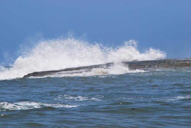 Keywords: sea beach surf wave spray flood tides rock water blue sky coast