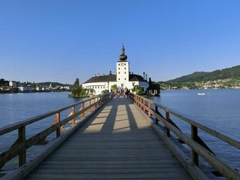 Keywords: sea castle place gmunden traunsee water post railing bridge web austria