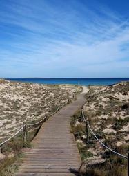 Keywords: sea dune mediterranean spain away beach path dune landscape grasses nature sand dunes coast landscape hill summer rest idyll holiday nature reserve balearic islands