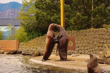 Keywords: sea lion friends love statues bronze zoo swimming pool