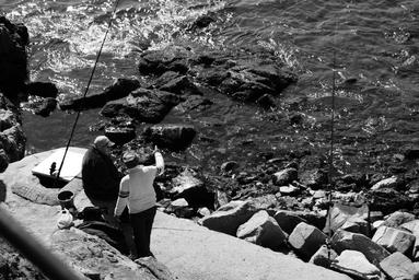 Keywords: sea fish fishing people angling fishing rod tacks shore rocks waves