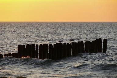 Keywords: sea gulls breakwater sunset baltic sea horizon orange sky baltic water nature seascape