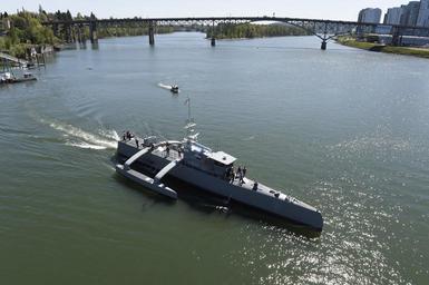 | Keywords: Sea Hunter gets underway on the Willamette River following a christening ceremony in Portland, Ore. (25702146834).jpg PORTLAND Ore Apr 7 2016 Sea Hunter an entirely new class of unmanned ocean-going vessel gets underway on the Willamette River following a christening ceremony in Portland Ore Part the of the Defense Advanced Research Projects Agency DARPA 's Anti-Submarine Warfare Continuous Trail Unmanned Vessel ACTUV program in conjunction with the Office of Naval Research ONR is working to fully test the capabilities of the vessel and several innovative payloads with the goal of transitioning the technology to Navy operational use once fully proven 160407-N-PO203-598 Navy http //www navy mil/view_image asp id 214556 2016-04-07 15 52 U S Navy photo by John F Williams/Released Attribution License IPTC Caption-Abstract U S Navy photo PD-USGov-Military-Navy Official U S Navy Imagery https //flickr com/photos/56594044 N06/25702146834 2016-04-08 18 31 59 cc-by-2 0 Photographs taken on 2016-04-07 Sea Hunter unmanned ship Ross Island Bridge Willamette River April 2016 in Portland Oregon Ross Island Oregon |