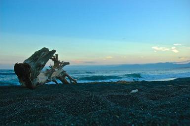Keywords: sea japan asia wood beach stones water evening at dusk the root of the death tree of death romantic