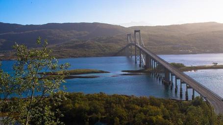 Keywords: sea landscape fjord bridge suspension bridge norway water water reflection nature mood blue azure
