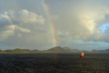 Keywords: sea mediterranean island boat boating rainbow sky clouds nature