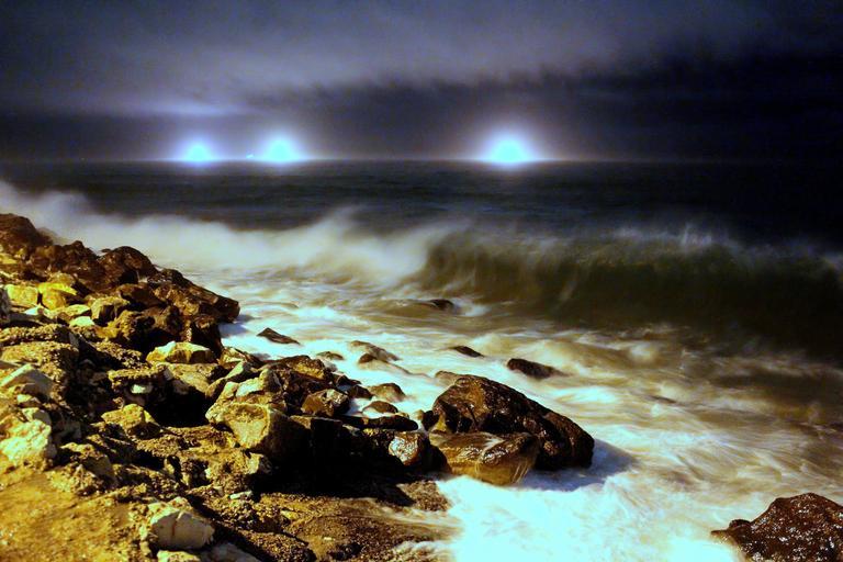 Keywords: sea night waves water