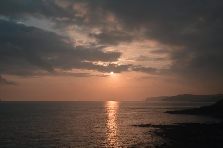 Keywords: sea ocean brittany sunset water sun sunset on the sea sky reflections on the water seaside shore evening horizon landscape