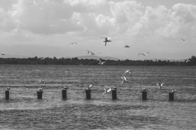 Keywords: sea ocean seagull birds flock summer sun beach wave nature vacation travel sky holiday water landscape summer vacation coast tropical outdoor black and white
