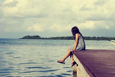 Keywords: sea pier female alone woman sitting lonely relax dreaming beach summer