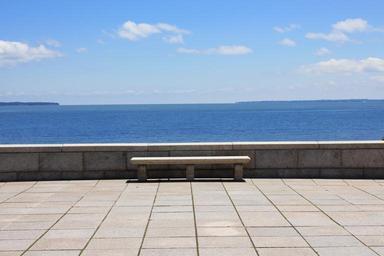 Keywords: sea sea view bench vista view horizon peace peaceful calm quiet endless blue water