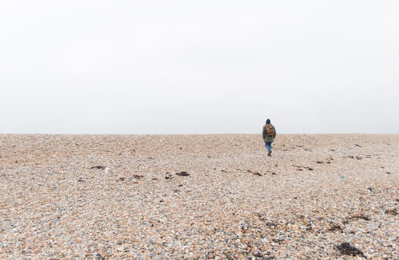 Keywords: sea stones beach lonely human pebble pebble beach england sandwich mussels hiking go alone coast landscape meditation meaningful search