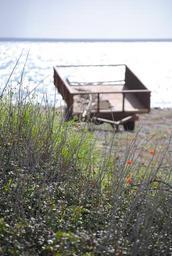 Keywords: sea trailer mediterranean water nature coast travel europe tourism island seaside coastline beach vacation seascape ocean natural scenic spring flowers and sea old trailer shore sunset