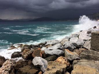 Keywords: sea water forward coast stones beach rock blue wave surf