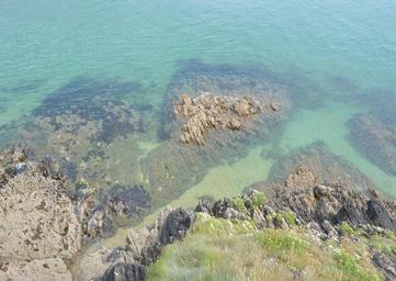 Keywords: sea water turquoise side blue transparent water rock calm seaside blue water nature brittany finistère france