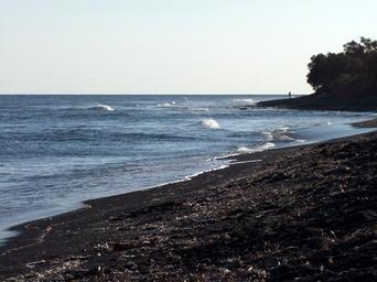 Keywords: sea wave lonely beach black sand wide loneliness rest santorini greece cyclades island