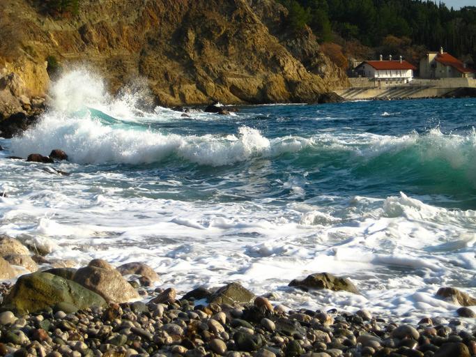 Keywords: sea wave rock ocean water blue beach landscape coast marine