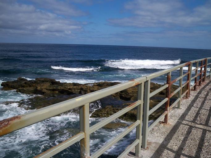 Keywords: sea waves coast rocky pacific platform fenced clouds sky summer california