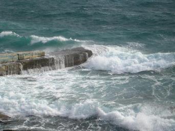 Keywords: sea waves wave ocean water nature blue travel coast whitecaps breakwater cutwater groyne rock pebble