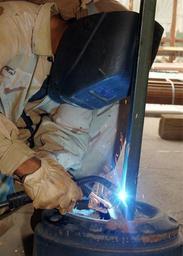 | Keywords: Seabees DVIDS37960.jpg en Petty Officer 3rd Class Joey Sanchez a steel worker with the Seabees Naval Mobile Construction Battalion 133 uses a metal inert gas welding torch to repair traffic signs at the Alpha Company Yard on Camp Arifjan Kuwait The yard is home to hundreds of pieces of machinery used by the Seabees in construction projects throughout Kuwait 2004-12-31 https //www dvidshub net/image/37960 37960 2007-03-14 09 40 CAMP ARIFJAN KW PD-USGov Camp Arifjan Images from DoD uploaded by Fæ |