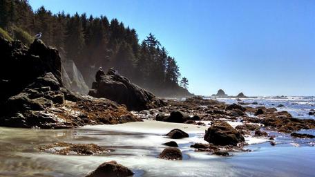 Keywords: seacoast rocks ocean landscape sea coast stones rocky seascape scenic pacific ocean sea gull bird perched water sand beach