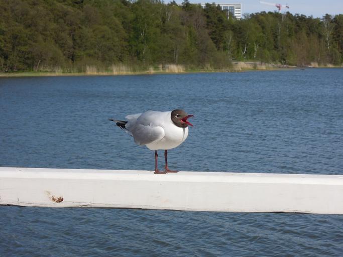 Keywords: seagull laughing gull sea seaside beach water nature landscape summer blue city helsinki wood fence finnish animal bird seurasaari island