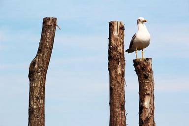Keywords: seagull peg pile bird wood wood pile post
