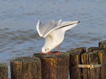 Keywords: seagull water bird plumage stretch departure coast baltic sea groynes