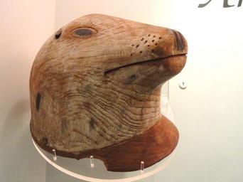 | Keywords: Seal decoy helmet, Pacific Eskimo, Kodiak Island, before 1869 - Native American collection - Peabody Museum, Harvard University - DSC05643.JPG Seal decoy helmet Alutiiq Kodiak Island before 1869 Exhibit from the Native American Collection Peabody Museum Harvard University Cambridge Massachusetts USA Photography was permitted without restriction; exhibit is old enough so that it is in the public domain Daderot 2012-03-18 14 11 42 Daderot cc0 cc0 Native American Collection Peabody Museum Harvard University Alutiiq Sculptures in Alaska Native American woodcarving Seal hunting Hunting decoys Helmet masks Carved wooden figurines Pinnipedia heads Unidentified Phocidae |