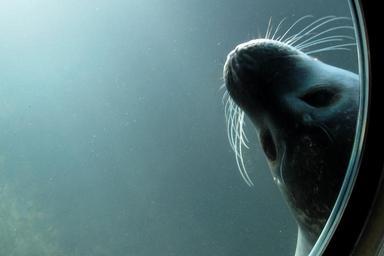Keywords: seal diving zoo eyes snout mood sweet window water blue atmosphere animal