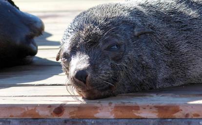 Keywords: seal sunbathing docks plank rest snout fur view wet animal world