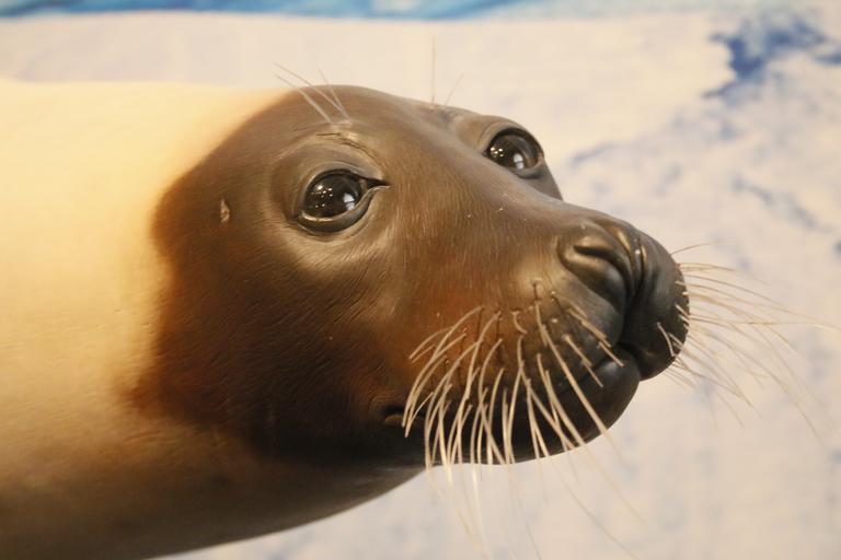 Keywords: seal whiskers animal mammal ocean sea water museum exhibit eyes snout