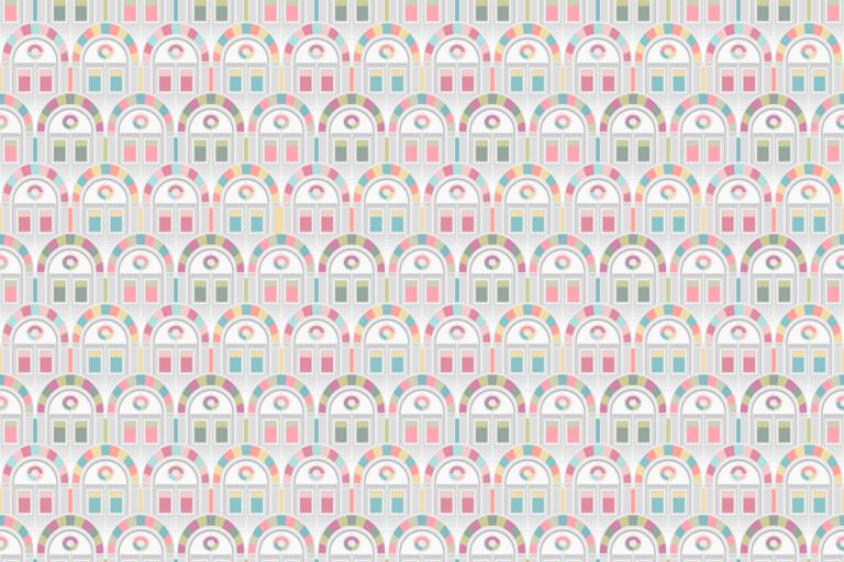 Keywords: seamless pattern background abstract arches windows seamless texture design blue white pink purple green yellow grey pattern
