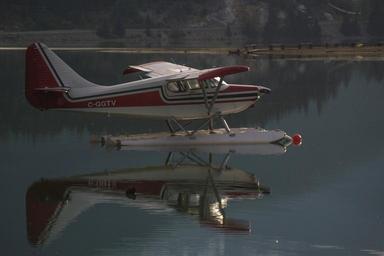 Keywords: seaplane airplane floatplane pontoons water evening dusk twilight aviation fly reflection float plane transportation