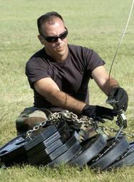 | Keywords: Search and rescue missions underway DVIDS10344.jpg en RANDOLPH AIR FORCE BASE Texas -- Senior Airman Ronald Arroyo attaches a 600-pound weight to the rescue cable of an HH-60 Pave Hawk for an operational test prior to its departure on a search and rescue mission over southern Texas Sept 24 Airman Arroyo is a crew chief from the 920th Rescue Wing Patrick Air Force Base Fla U S Air Force photo by Master Sgt Jack Braden 2005-09-24 https //www dvidshub net/image/10344 10344 2005-09-26 20 45 RANDOLPH AIR FORCE BASE TX US PD-USGov Patrick Air Force Base Images from DoD uploaded by Fæ 920th Rescue Wing United States Air Force |