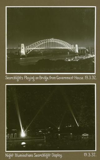 Keywords: archives state records nsw staterecordsnsw newsouthwales blackandwhite photo border monochrome black and white Title: Searchlights Playing on Bridge, from Government House. Night Illuminations Searchlight Display Dated: 19/03/1932 Digital ID: 12685_a007_a00704_8734000072r Series: NRS 12685 Sydney Harbour Bridge Photographic Albums Rights: No known copyright restrictions www.records.nsw.gov.au/about-us/rights-and-permissions We'd love to hear from you if you use our photos/documents. Many other photos in our collection are available to view and browse on our website using Photo Investigator. Title: Searchlights Playing on Bridge, from Government House. Night Illuminations Searchlight Display Dated: 19/03/1932 Digital ID: 12685_a007_a00704_8734000072r Series: NRS 12685 Sydney Harbour Bridge Photographic Albums Rights: No known copyright restrictions www.records.nsw.gov.au/about-us/rights-and-permissions We'd love to hear from you if you use our photos/documents. Many other photos in our collection are available to view and browse on our website using Photo Investigator. |