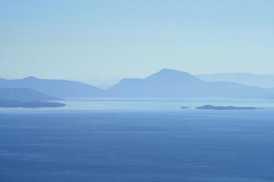 Keywords: seascape coast shore sea ocean islands distant misty summer water nature travel vacation coastline outdoor scenery tranquil