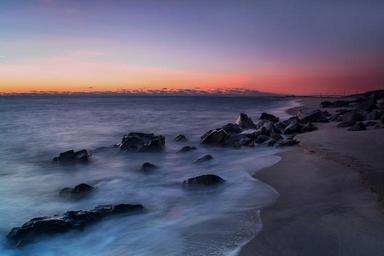 Keywords: seascape coastline beach shore coast landscape sunset sand rocks scenic new jersey sandy hook waves ocean sea nature twilight dusk