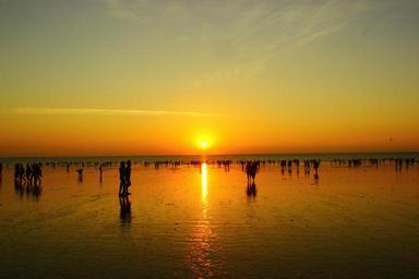 Keywords: seashore sunset evening beach ocean water nature summer landscape coast vacation crowd people many