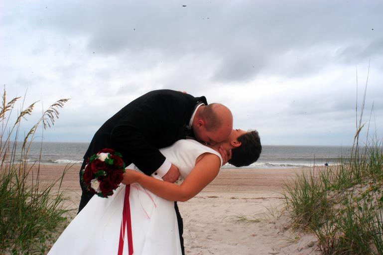 Keywords: seaside wedding session white dress wedding beach couple bride groom romantic married kiss first kiss
