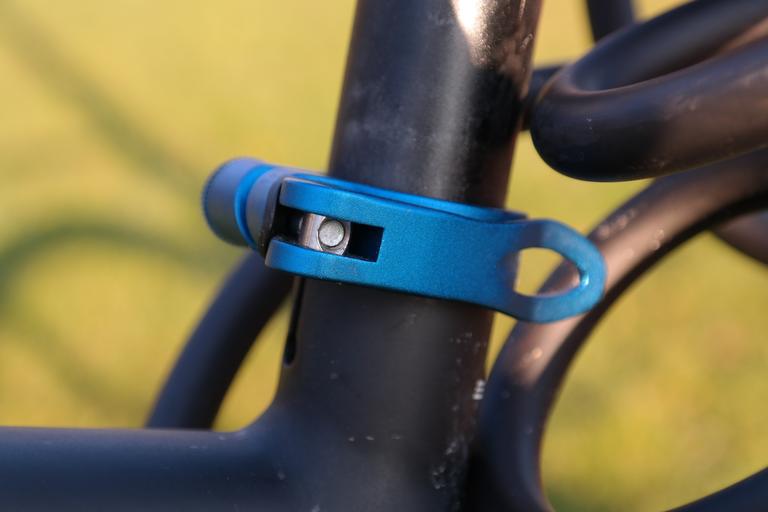 Keywords: seat clamp terminal blue anodized seatpost fixation aluminium quick release skewers eccentric clamp quick release