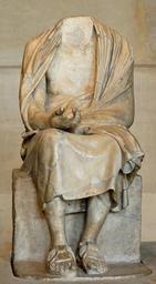 | Keywords: Seated old man Louvre Ma80.jpg Seated old man Marble Roman copy of the 2nd century CE after a Hellenistic original maybe the 3rd-century BC statue of Chrysippus by Euboulides described by Pliny 34 88 Used to be completed by a head of Aristoteles Ma 80 bis From Italy Vieillard assis Marbre copie romaine du IIe siècle d'après un original hellénistique peut-être la statue de Chrysippe par Euboulides décrite par Pline XXXIV 88 Autrefois complété par une tête d'Aristote Ma 80 bis Provenance Italie H 1 13 m 3 ft 8 ¼ in Museum Louvre Department of Greek Etruscan and Roman antiquities Sully ground floor room 17 object history credit line Della Porta then Borghese Collection; purchase 1807 accession number Ma 80 MR 329 Jastrow 2007 other versions Chrysippus of Soli Euboulides Hellenistic sculptures in France Borghese Collection Roman copies after Greek originals in the Louvre Greek antiquities in the Louvre - Room 17 Old men in art 1807 2nd-century statues Ancient Roman statues in the Louvre Ancient Roman statues from Italy Sitting men |