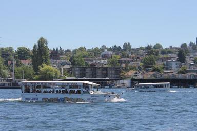 Keywords: seattle washington lake union puget sound downtown city northwest urban pacific blue sky water travel duck boat tourist float lake