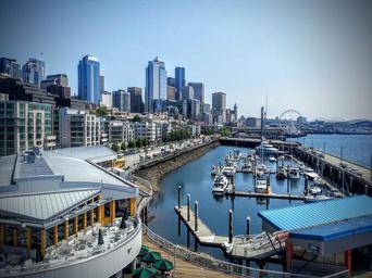 Keywords: seattle water front washington seattle skyline downtown ferris wheel northwest skyscrapers