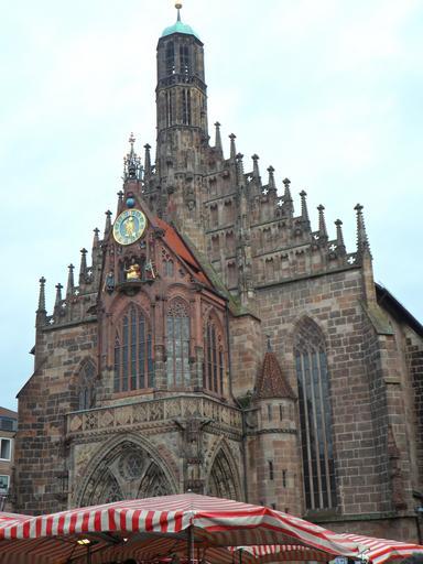 Keywords: sebaldskirche market market umbrellas church nuremberg old town market day gothic facade architecture