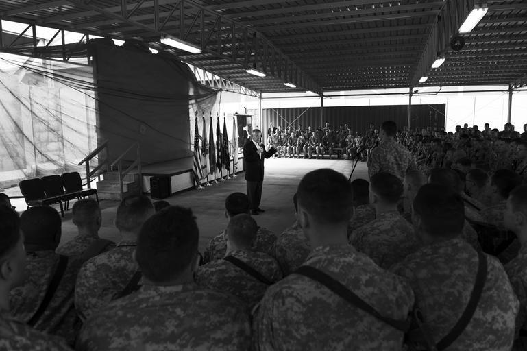 | Keywords: SecDef visits Iraq 141209-D-DT527-155.jpg en Secretary of Defense Chuck Hagel addresses service members at Baghdad International Airport Iraq during a visit Dec 9 2014 Photo by Master Sgt Adrian Cadiz/Released 2014-12-09 Master Sgt Adrian Cadiz https //www dvidshub net/image/1692581 141209-D-DT527-155 2014-12-09 16 08 BAGHDAD IQ PD-USGov Chuck Hagel Images from DoD uploaded by Fæ | ||||