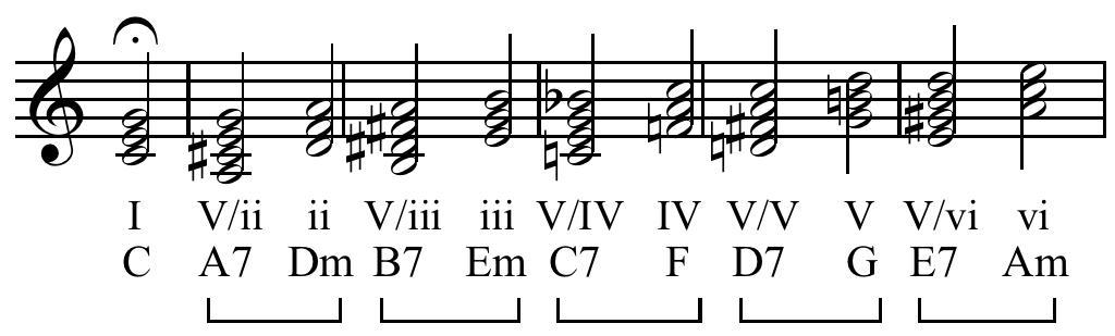 Keywords: SecondaryDominantSeventhChordsInCMajor.PNG Secondary_Dominant_Seventh_Chords_In_C_Major svg Music notation the secondary dominant seventh chords in the key of C major Image file created with Sibelius software by Opus33 This music was not composed by anyone but is simply a sequence of chords used to illustrate a point about musical harmony The image is not copyrighted and it is hereby released by Opus33 into the public domain en wikipedia Bulwersator CommonsHelper 2004-06-12 Opus33 wikipedia en File SecondaryDominantSeventhChordsInCMajor ogg Opus33 Original upload log page en wikipedia SecondaryDominantSeventhChordsInCMajor PNG 2010-12-12 16 38 Hyacinth 1024×309× 11899 bytes <nowiki>Music notation the secondary dominant seventh chords in the key of C major Image file created with Sibelius software by Opus33 This music was not composed by anyone but is simply a sequence of chords used</nowiki> 2004-06-12 22 27 Opus33 780×149× 8559 bytes <nowiki>Music notation the secondary dominant seventh chords in the key of C major</nowiki> Chord progressions Secondary dominant Roman numeral analysis |