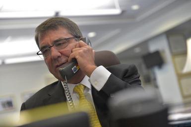 | Keywords: Secretary of defense congratulates first women to graduate from US Army Ranger School 150820-D-NI589-050.jpg en Secretary of Defense Ash Carter speaks by phone with Army 1st Lt Shaye Haver and 1st Lt Kristen Griest to congratulate the two for their recent graduation from the rigorous Army Ranger School from his office at the Pentagon Aug 20 2015 Haver and Griest are the first women to successfully complete the course after the Army began allowing women to participate in the elite program DOD Photo by Glenn Fawcett/Released 2015-08-20 Glenn Fawcett https //www dvidshub net/image/2133405 150820-D-NI589-050 2015-08-20 12 59 PENTAGON DC US 3 PD-USGov Ashton Carter Images from DoD uploaded by Fæ Photographs by Glenn Fawcett |